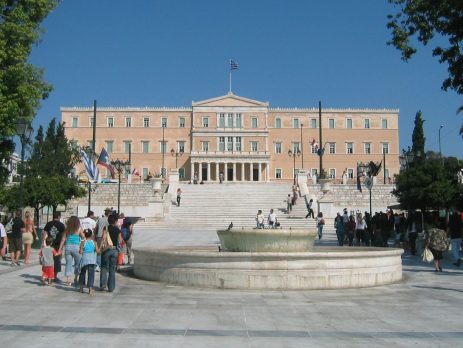 Η βουλή των Ελλήνων βρίσκεται στο παλαιό βασιλικό παλάτι, κοιτάζοντας το τετράγωνο του Συντάγματος στην Αθήνα.